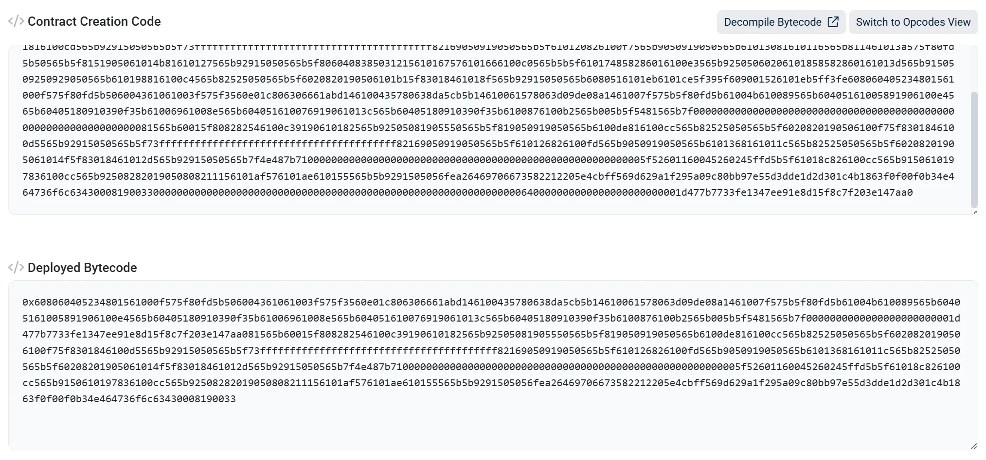 - Contract Creation Code 显示的是 Init Code