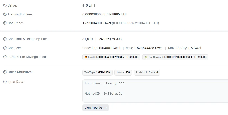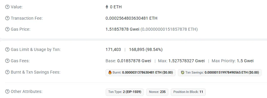 | Txn Savings | 0.000001519978490565 ETH |